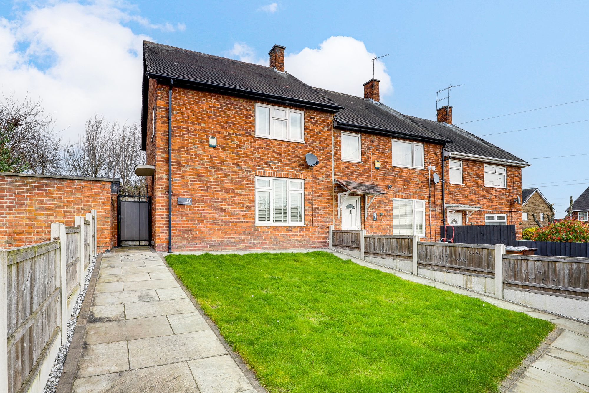 A beautifully refurbished end-terraced home, ideally situated in a popular residential location with excellent access to a range of local amenities, including shops, schools, and transport links. This property offers a perfect combination of modern living and practical family space and a newly fitted Worcester Bosch Combi boiler with Hive thermostat. To the front, the house boasts a well-maintained lawn, a gated pathway leading to the rear garden, and a fence-panelled boundary, providing both privacy and curb appeal. Stepping inside, the entrance hall leads into a spacious living room featuring a charming feature fireplace, creating a warm and welcoming atmosphere. The modern fitted kitchen is designed for both style and functionality and flows seamlessly into the utility room, which provides direct access to the rear garden. On the first floor, there are three well-proportioned bedrooms and a contemporary three-piece bathroom suite, offering comfortable accommodation for family living. The rear garden is fully enclosed, offering a private outdoor space perfect for relaxing or entertaining. It features a patio area leading to a lawn via a small set of steps, a shed, and established shrubs and bushes, all bordered by fence panels to ensure privacy and security. This property represents an excellent opportunity to acquire a ready-to-move-in home in a sought-after location.