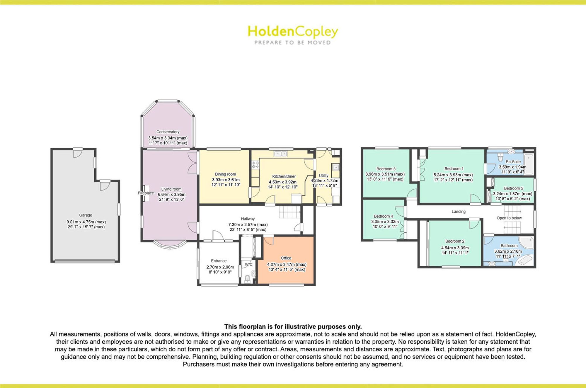 Set within approximately a third of an acre in a highly sought after location, this substantial five bedroom detached house offers an exceptional standard of accommodation with stunning views across the surrounding areas. The property features a welcoming entrance porch and hallway that leads to three generously sized reception rooms, providing flexible spaces for family living, entertaining, or a home office. The modern fitted kitchen/diner is complemented by a separate utility room, offering ample storage and workspace. A bright conservatory overlooks the garden, creating an ideal spot for relaxation. A ground floor W/C adds further convenience. Upstairs, the spacious master bedroom boasts a spacious en-suite bathroom, while the remaining four bedrooms are served by a contemporary four-piece family bathroom suite. The property also benefits from a double garage and a driveway with parking for several vehicles. The outside space is equally impressive, starting with a well-maintained lawn at the front of the property, bordered by established plants, shrubs, and mature bushes that provide year-round colour and greenery. Two outside taps are conveniently positioned for easy garden maintenance. Access from the front allows for secure entry to the expansive rear garden. To the rear, the landscaped garden is thoughtfully designed with a further three outside water taps and external electrical points, catering for both practical needs and outdoor leisure. A patio seating area creates the perfect setting for al fresco dining or relaxing, complemented by a raised planted section that adds visual interest. Beyond the patio, a neatly kept lawn is framed by a variety of established plants and shrubs, enhancing the garden’s appeal throughout the seasons, which then continues down to a further flat multi-purpose garden area behind the conifer hedge. Additional features include a garden shed and a greenhouse, ideal for gardening enthusiasts, while secure fence panel boundaries offer privacy. There is also direct access from the garden into the garage, making this outside space as functional as it is attractive.