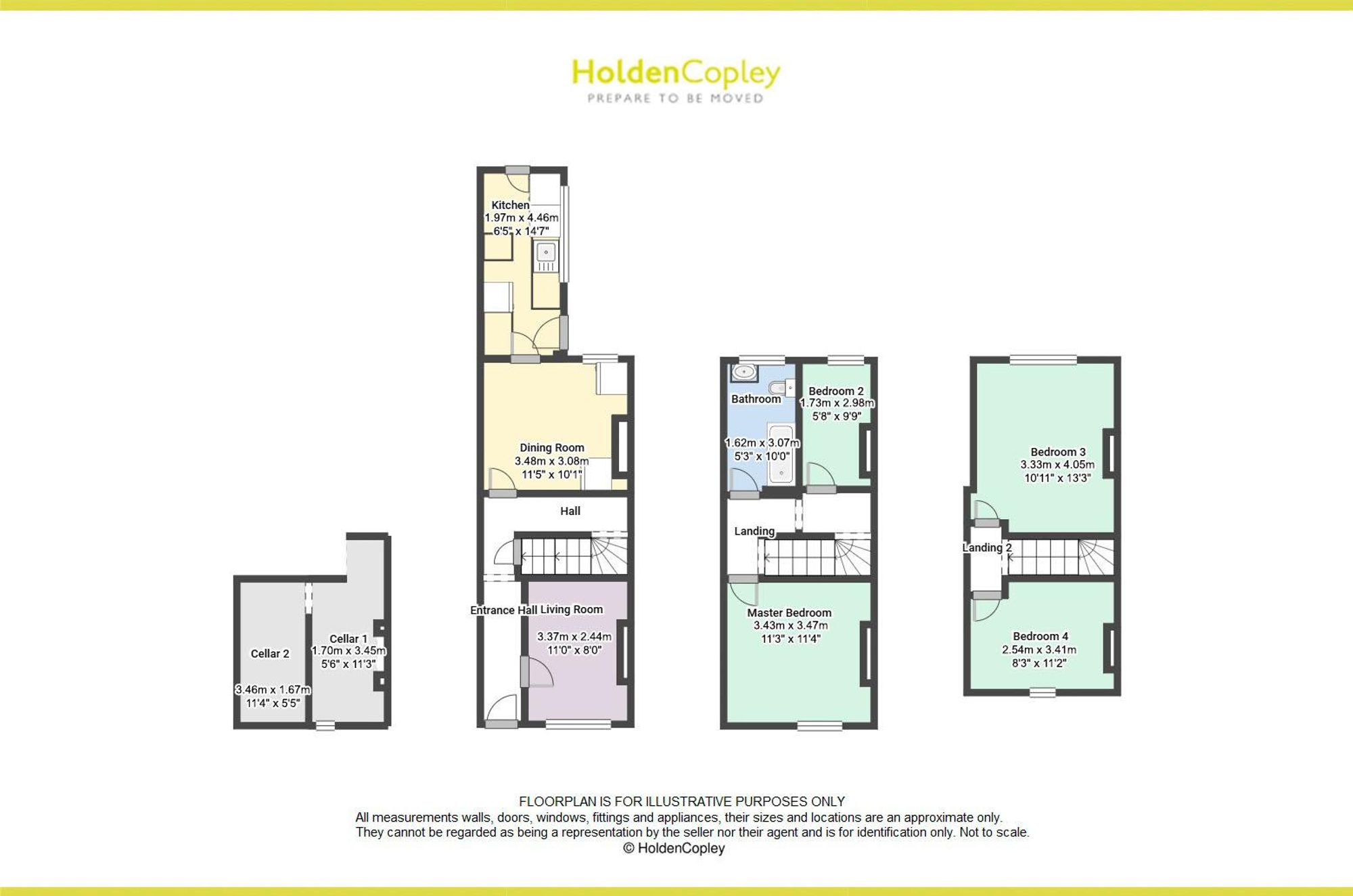 This three-storey terraced house, offered with no upward chain, is ideally situated close to local shops, schools, and excellent transport links, providing easy access to the City Centre. On the ground floor, an entrance hall leads into both the living room and the dining room. From the dining room, there is access to a fitted kitchen, while a door from the hallway provides entry to the cellar, offering useful storage space. The first floor comprises two bedrooms and a three-piece bathroom suite, while the second floor features a further two bedrooms, creating flexible living accommodation suitable for a growing family or those needing additional space. Externally, the property benefits from direct kerb access to the front, while the rear features a small courtyard with gated access, offering a private outdoor space.